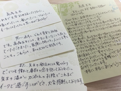 一緒に仕事をした最後の日、すべての業務が終わってからそれぞれがメッセージをくれました。一緒に働いていながらも、なかなかすべての思いを知ることはできなかったりするものですね。メッセージを読んで初めて知ったことがありました。