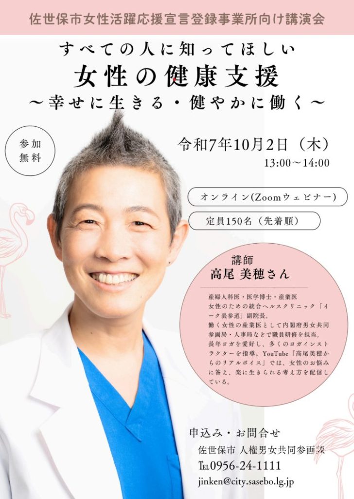 タイトルは「すべての人に知ってほしい、女性の健康支援 ~幸せに生きる・すこやかに働く~」