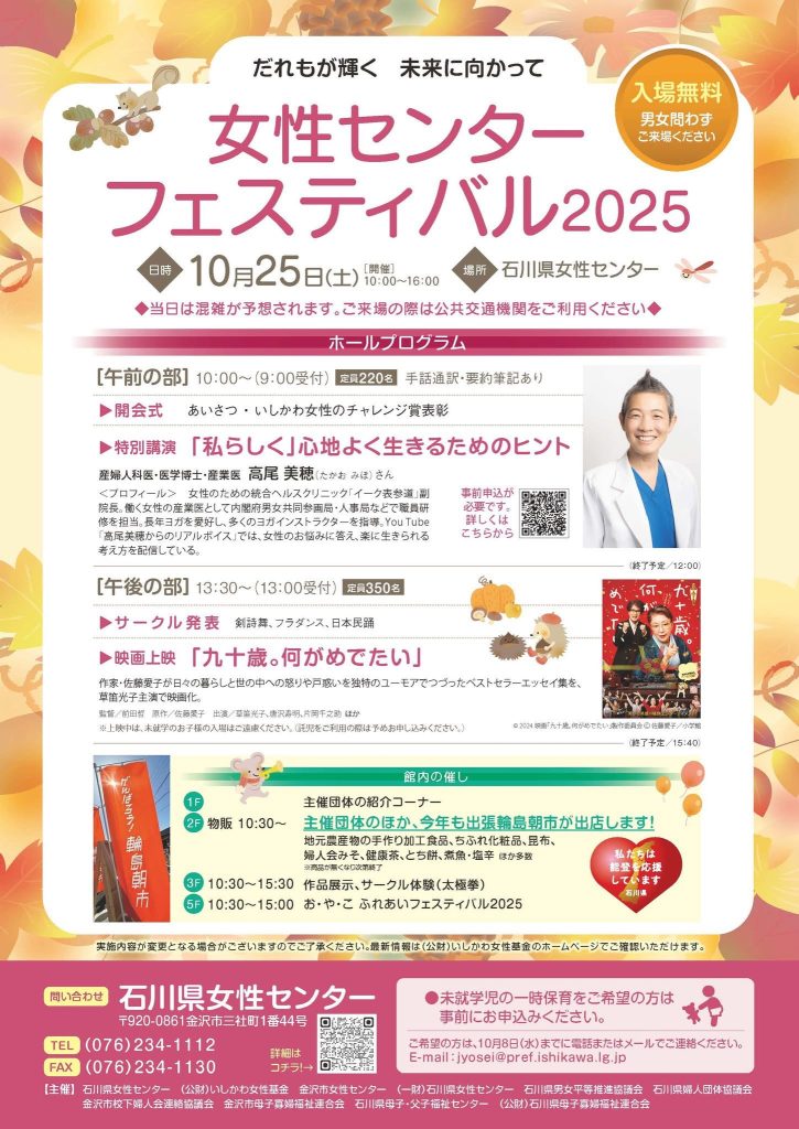 石川県女性センターフェスティバル2025 で特別講演「私らしく」心地よく生きるためのヒント に登壇いたします